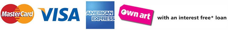 We accept all major credit & debit cards including Visa, Mastercard and American Express for payments both by telephone and in our gallery. We also offer the option to spread the cost of payments interest free, using the Own Art scheme.