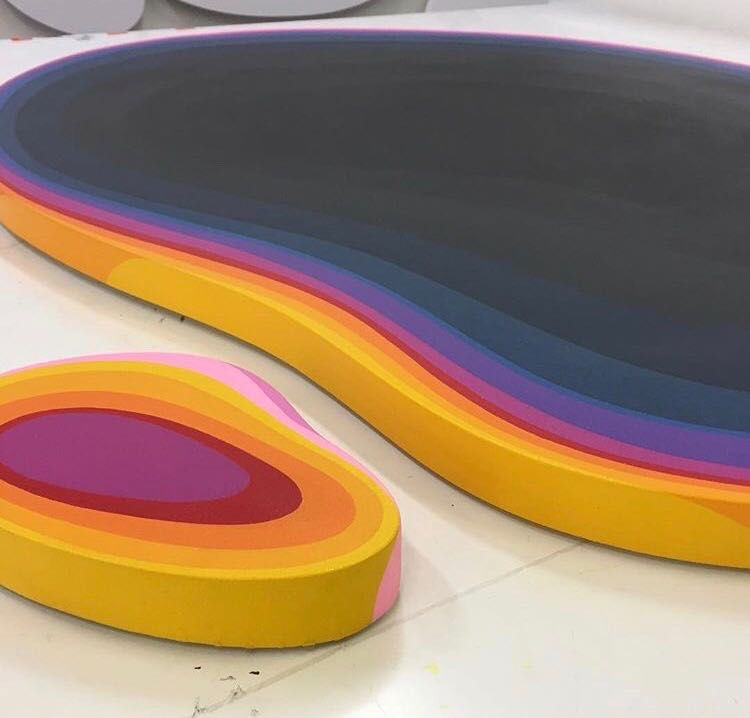 If we talk about my paintings. It begins by drawing a shape with a pencil. Than creating the custom stretcher frame, stretching a canvas, putting white gesso on it. After that comes the fun part of painting. I use to paint all brush, now I spray with a spray gun a lot. It gives me the possibility to play with shading. Use some delicate tones you don’t need to necessary discover right away. And of course I enjoy to put some brush lines to the paintings if needed. Once the painting is finished I spray transparent varnish over.