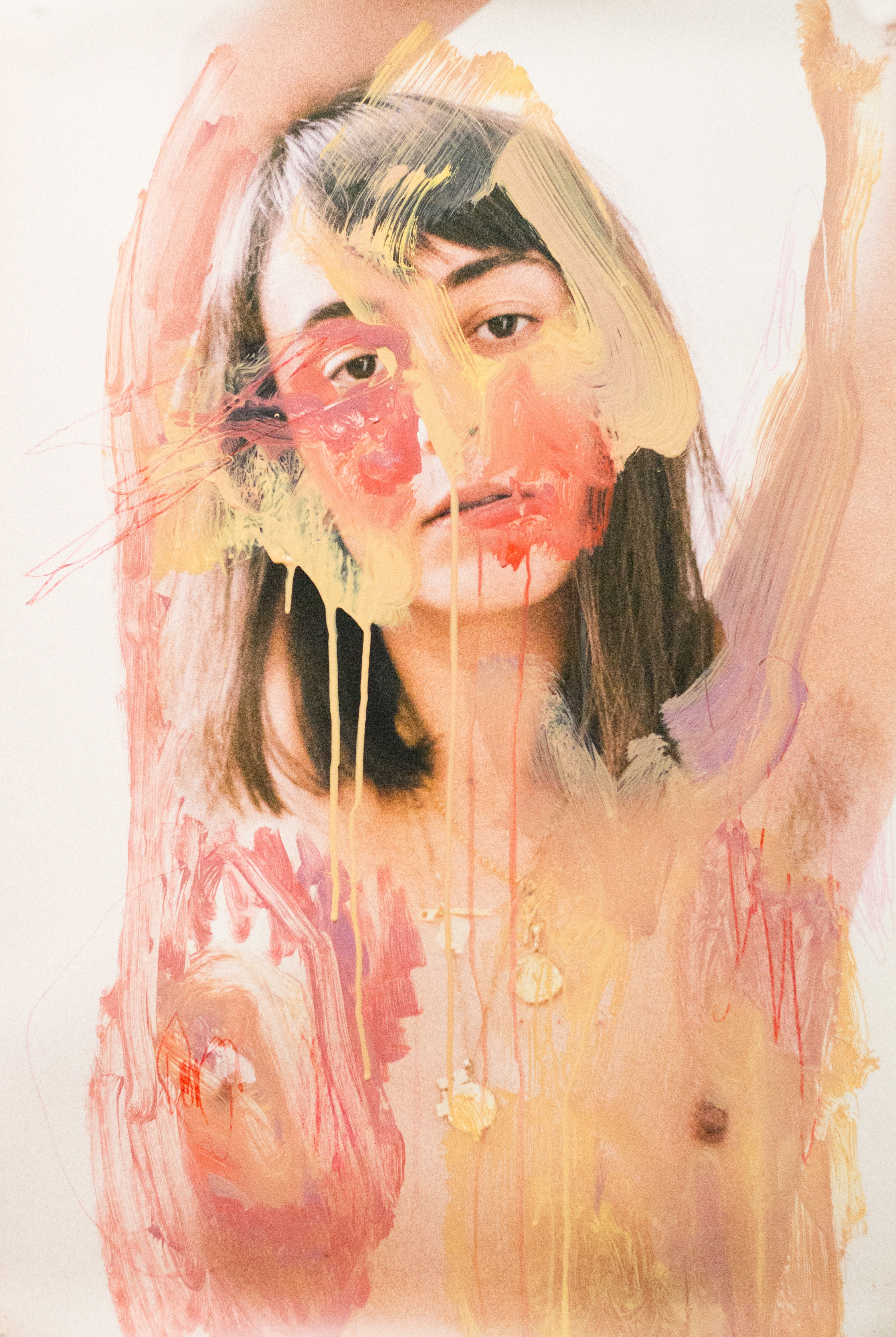 I think we’re living in a time where we commonly experience a sense conflict when it comes to what we’re consuming and how we choose to present ourselves. We can be met with criticism for sticking to a set of societal structures just as much as we can be criticised for breaking them. It’s like you’re damned if you do, damned if you don’t. When i first started experimenting with paint over photographic image, I found the clash between perfectionism and the grotesque, almost violent gestures [in paint] to be metaphorical of this contradiction within our consumer culture.