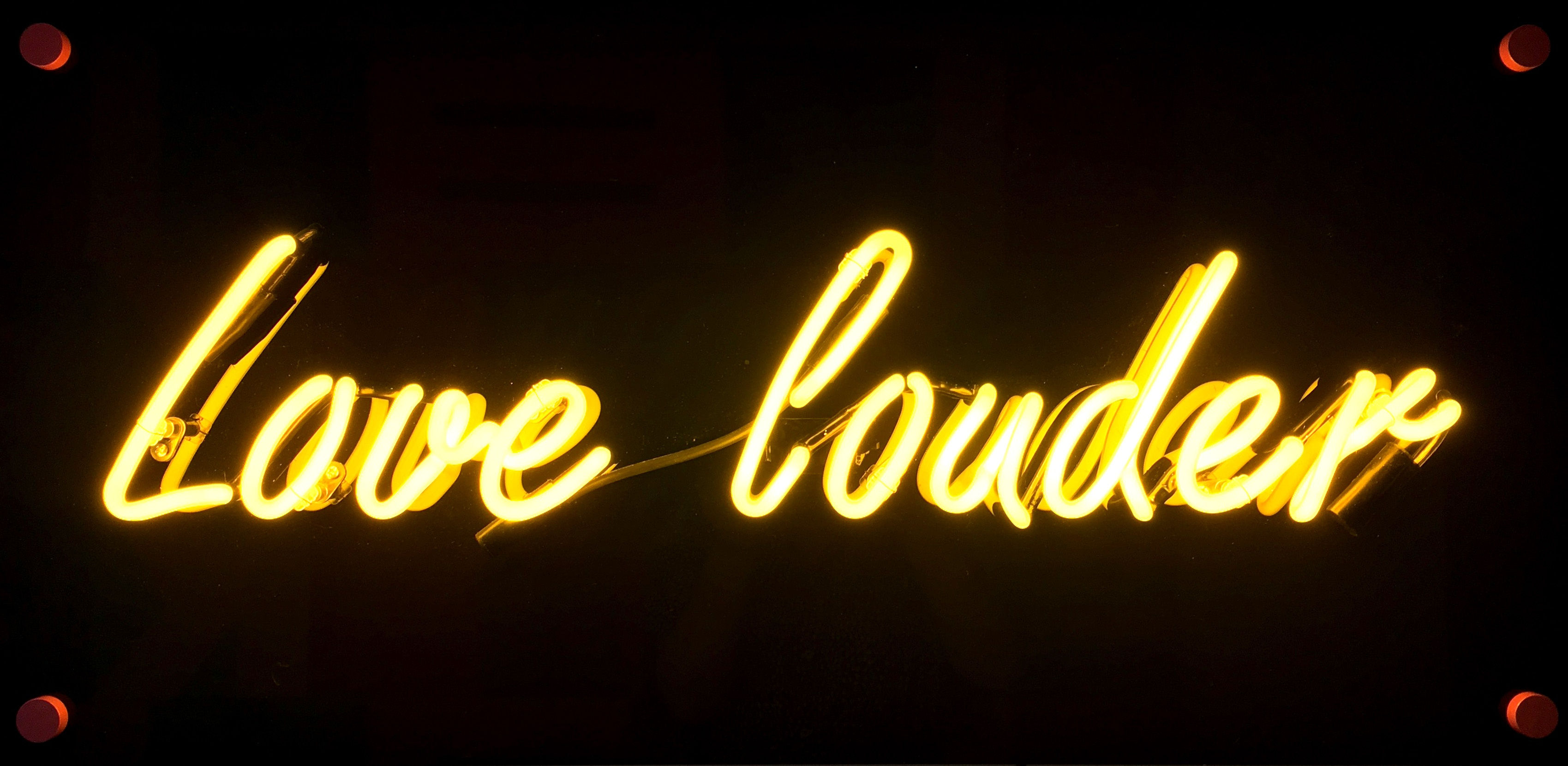 The lovely Zoe Grace graces us with a brand new piece “Love Louder, a neon on acrylic text based piece. Zoe Graceis known for the shiny and retro like neo made text, and, is an artist whom we have been closely working with for years. Grace embodies the sunshine, in her works, she looks at the positive impact encouraging, and loving words have on people.