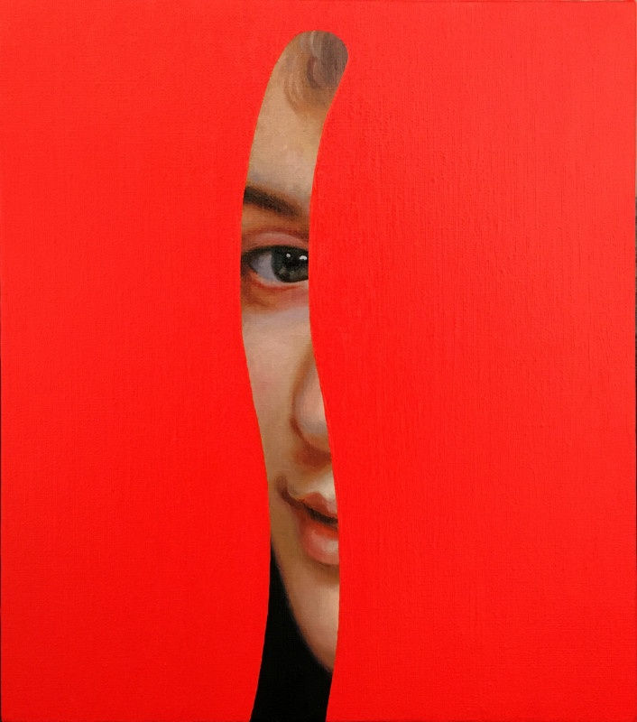 Lino Lago’s work plays on themes of contrasts and duality; abstract and figurative, visibility and obscurity, traditional and contemporary. The Fake Abstract series perfectly combines traditional realism with contemporary minimalism through a unique pictorial technique. The works experiment with the temporal nature of art and the relationship between contemporary art, classical artistic traditions and art history. The spaces that these women exist in are flattened by the block colour, the context is obscured and kept unidentifiable.