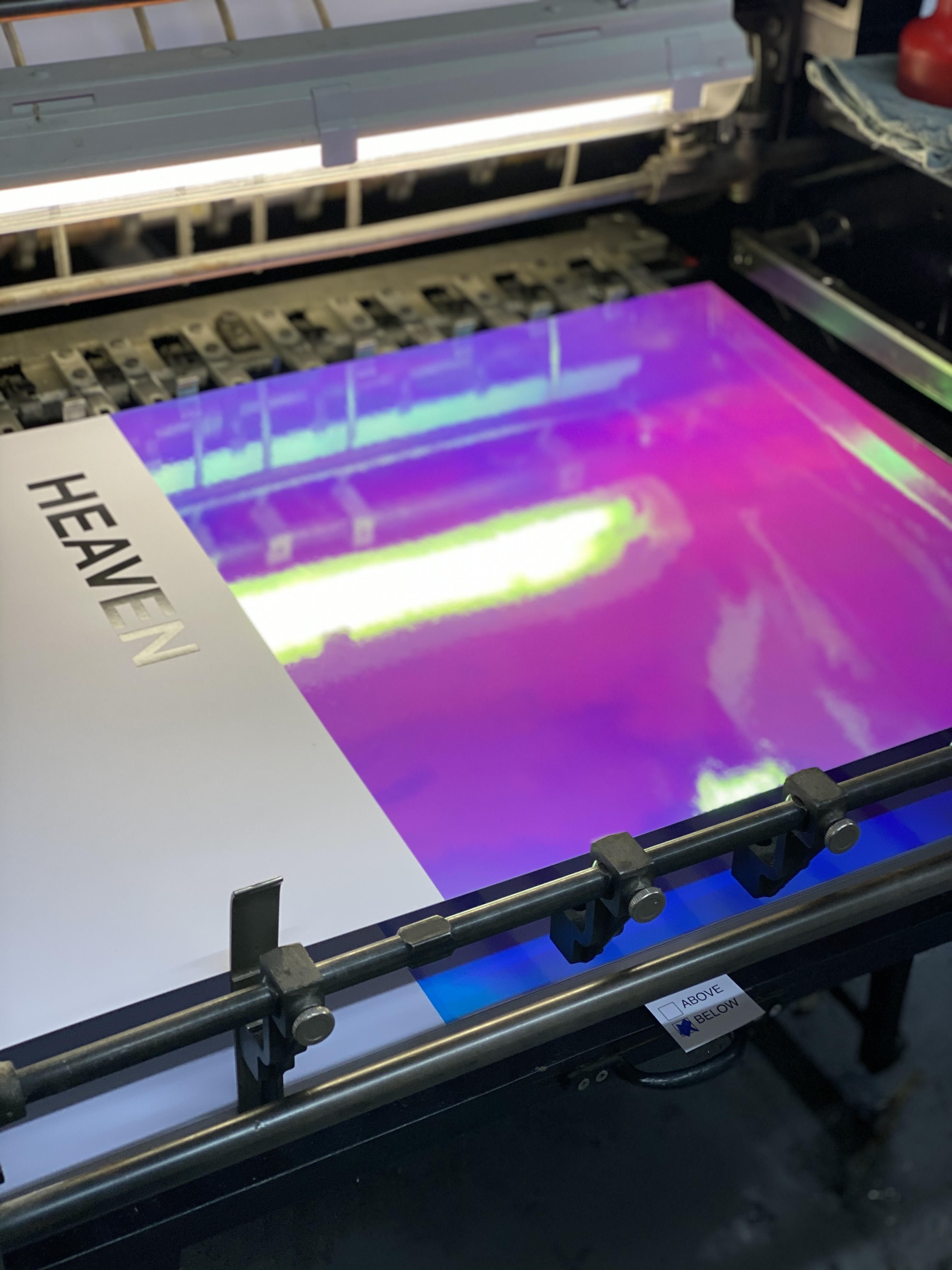 The edition is called 'Heaven' and includes an innovative use of an unusual foil material which gives the print its iridescent quality.