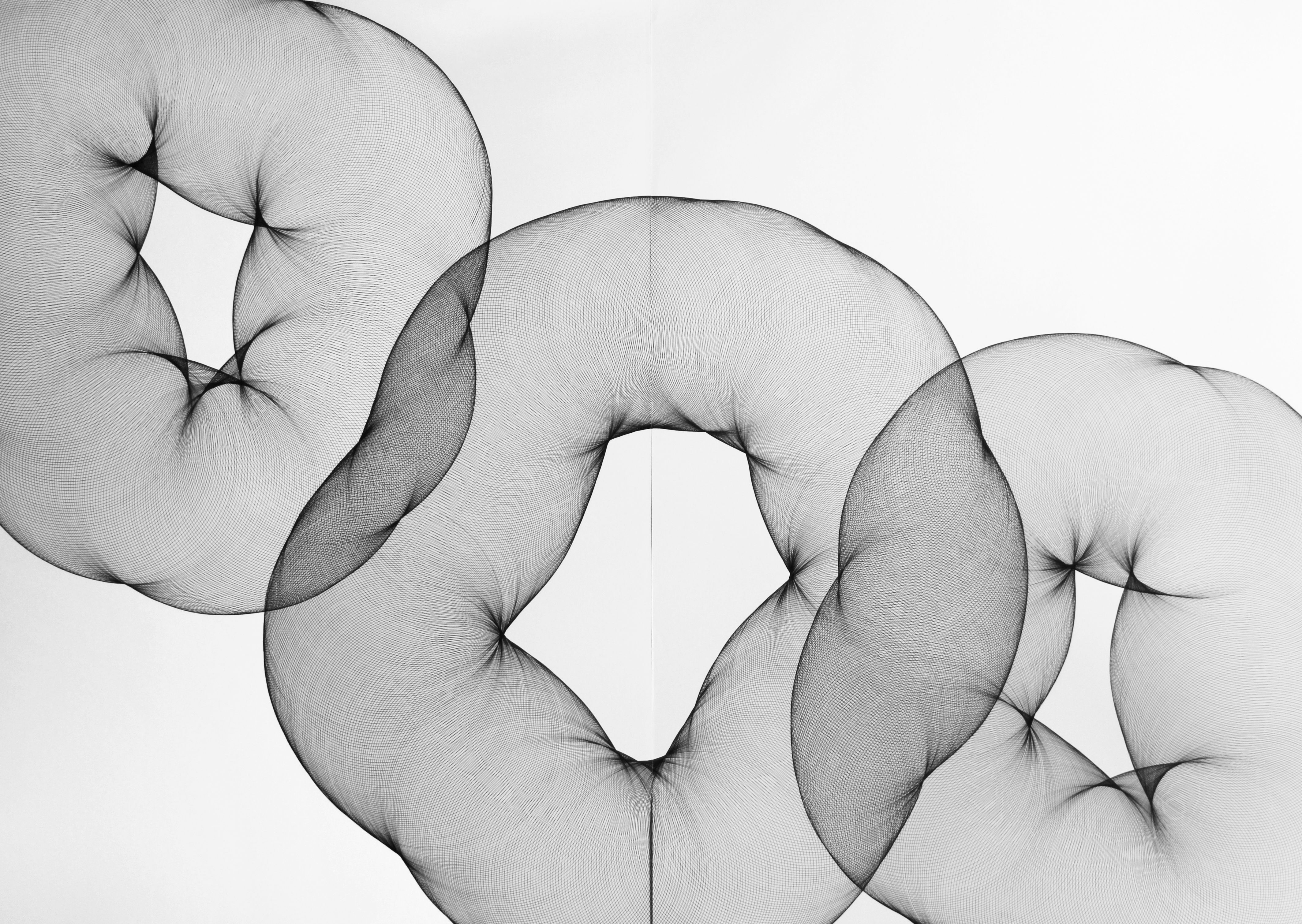 Although the works appear perfect, even digital, it is when the viewer looks closer, they see the small imperfections which make these works so mesmerising. The delicate pencil marks from a preliminary sketch, or the puncture holes of the compass make these works feel raw and real. You can see the method and time taken to create them, and that is what makes them so unique.