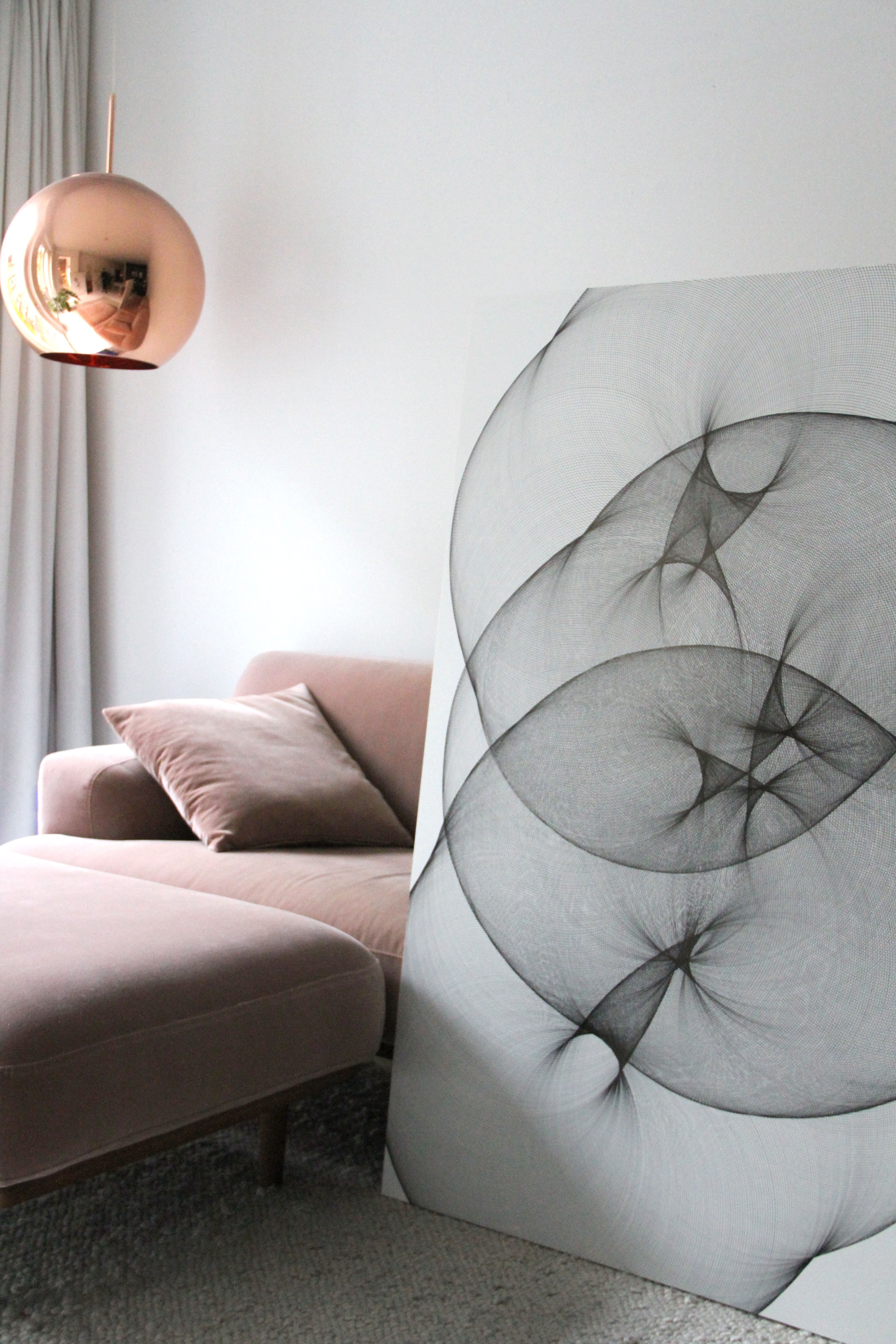 Pictured: One of Thomas Stemples intricate, large scale drawings in a living-space.