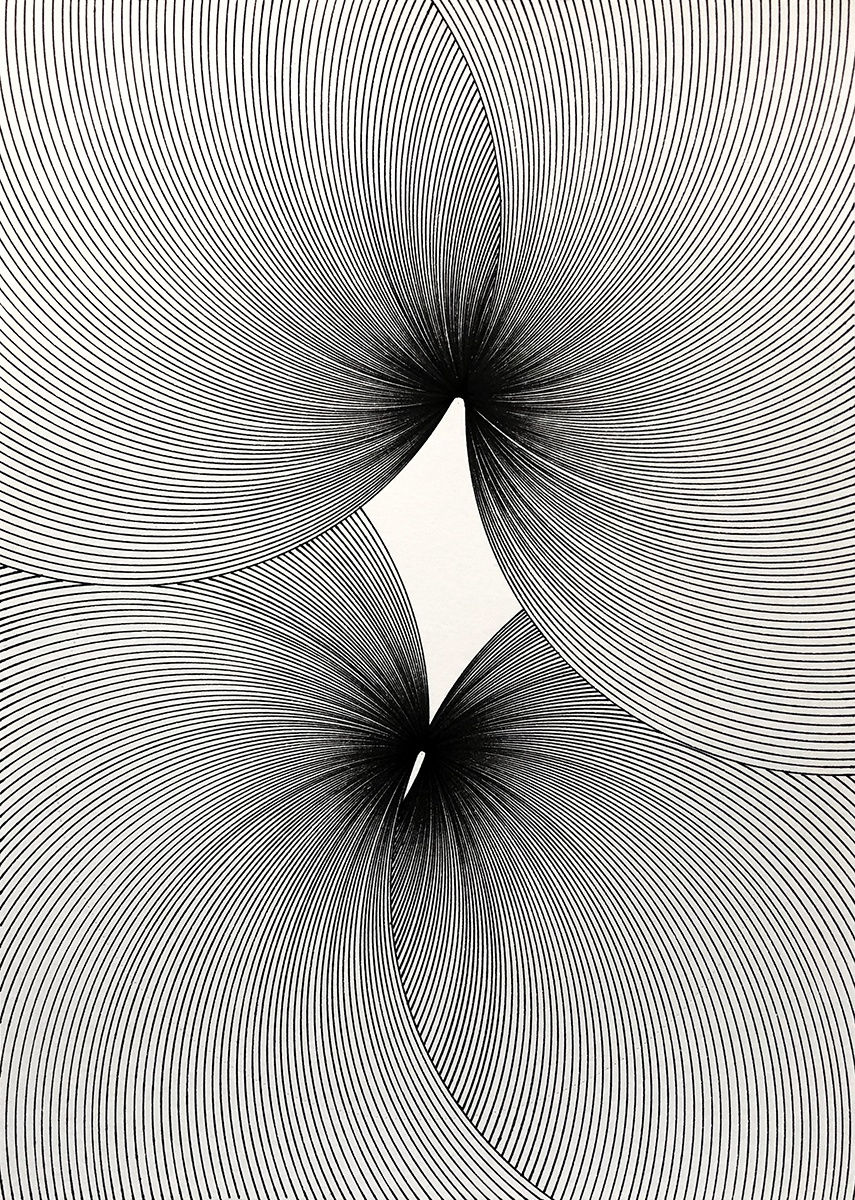Thomas Stempel’s detailed monochrome drawings are created entirely by hand, drawn carefully with ink and compass. Inspired by natural landscapes and forms, Stempel’s signature monochrome style and linear technique is immediately recognisable in this special series of 3 drawings. Titled FRAGA 33, FRAGA 35, and FRAGA 24 (all created 2022), the pieces draw from the shape and silhouette of veined leaves. Delicate and sinuous, each work invites the viewer to take a moment to contemplate the beauty, intricacy, and tranquillity of these natural forms. This framed collection can be purchased as a set or individually, for £400 each.