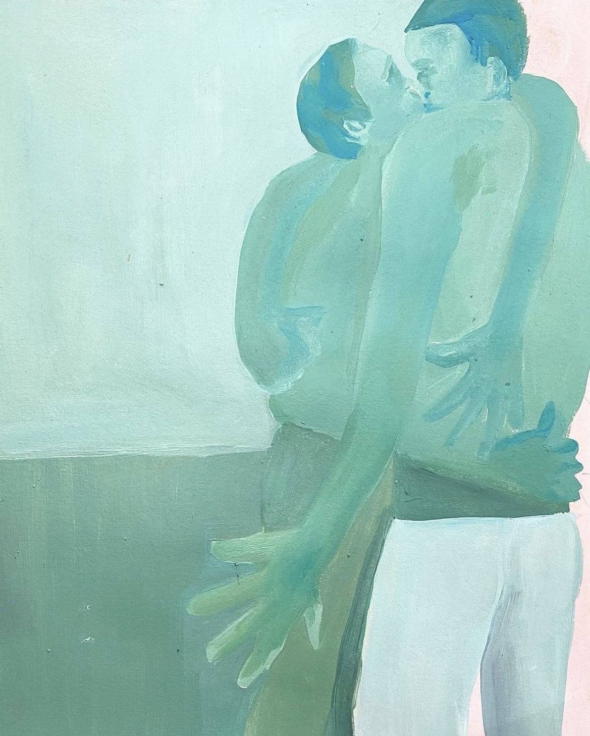 Camille Cottier explores themes of the body and identity in her ‘Les Bonshommes’ series that have been developed over ten years. In this collection, she features pieces that use a monochromatic style to question body politics and place importance on our connections to the people around us. Interrogating body and form, the tool of monochromatic colour is important to the impactful results of Camille Cottier’s paintings.