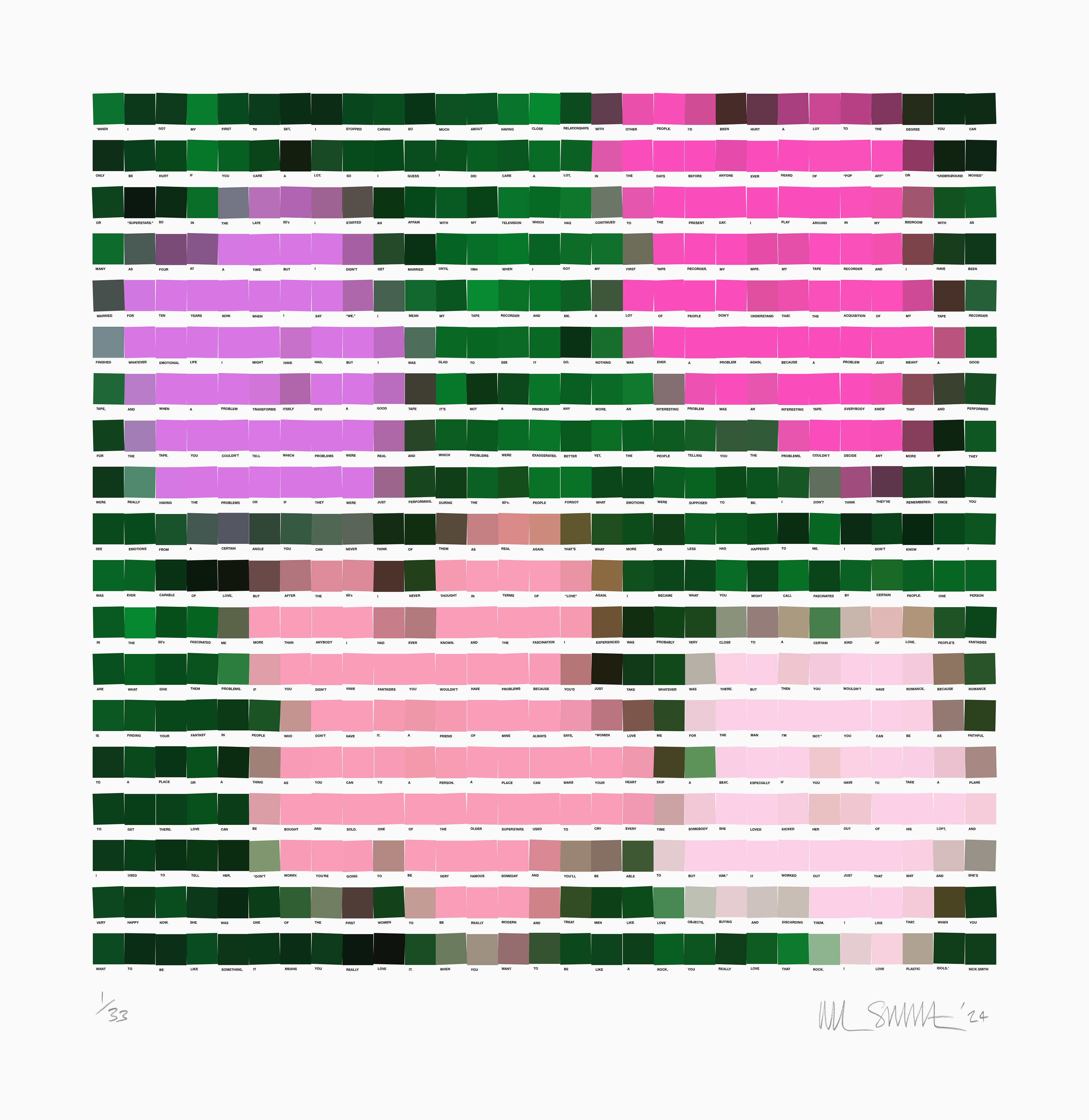 Nick Smith's pixelated collages, renowned for their fusion of pop culture and fine art, will take centre stage at this special event. The artwork intricately captures the essence of colour and language, inviting viewers to explore the intersection between visual imagery and textual narratives.