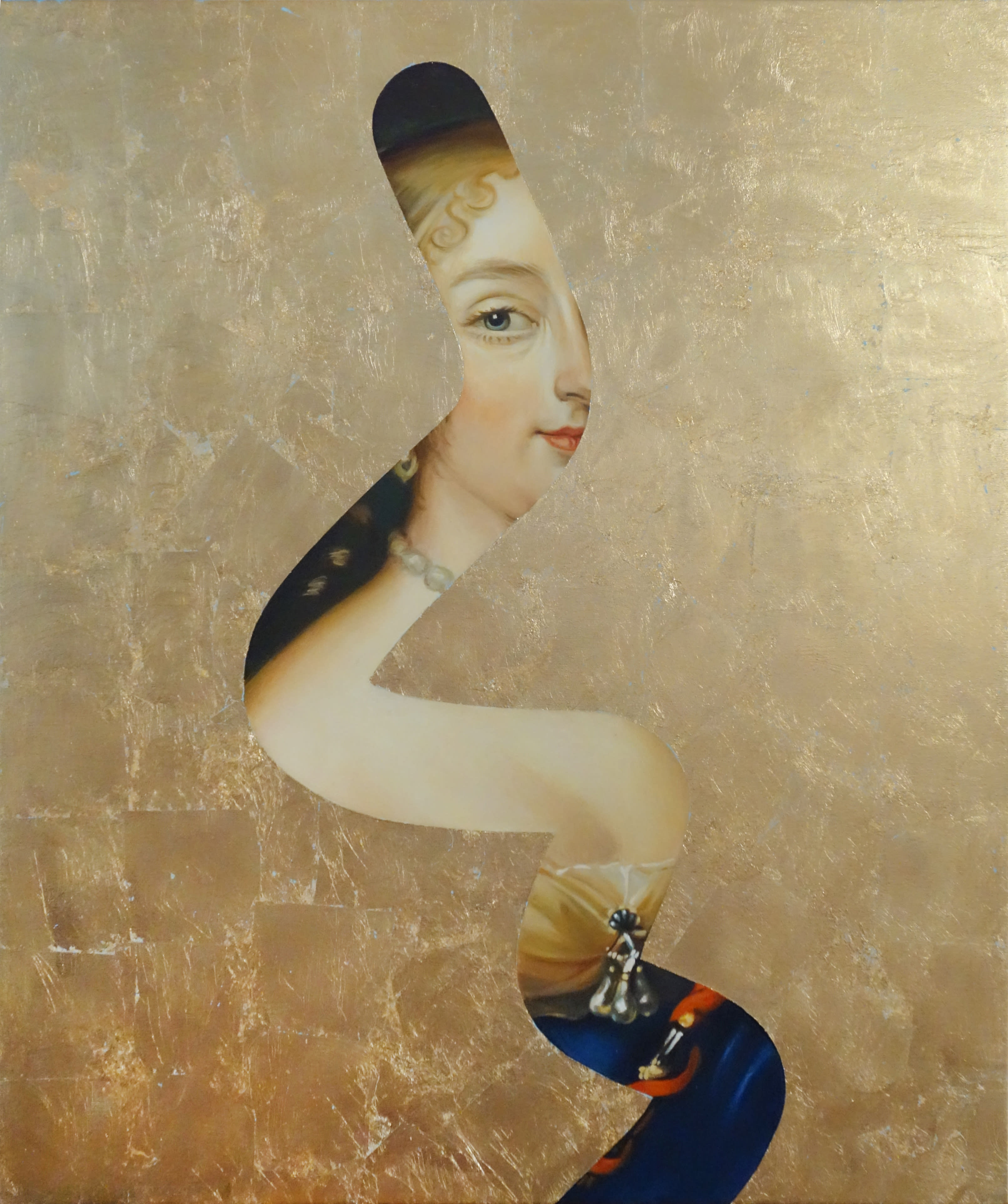 The Spanish artist returned to RHODES in August with a new series, continuing his subversion of the boundary between digital and classical art. Lago recreates iconic portraits in oil, only to cover them up with colour or gold leaf, leaving only a swirl of the original still visible. These digitally-inspired windows into the past leave the viewer with a sense of how the two could work together and how Lago is forcing them to merge through his practice. Fake Abstract (Joseph Karl Steiler) was released as a gold-leaf print edition alongside the exhibition.