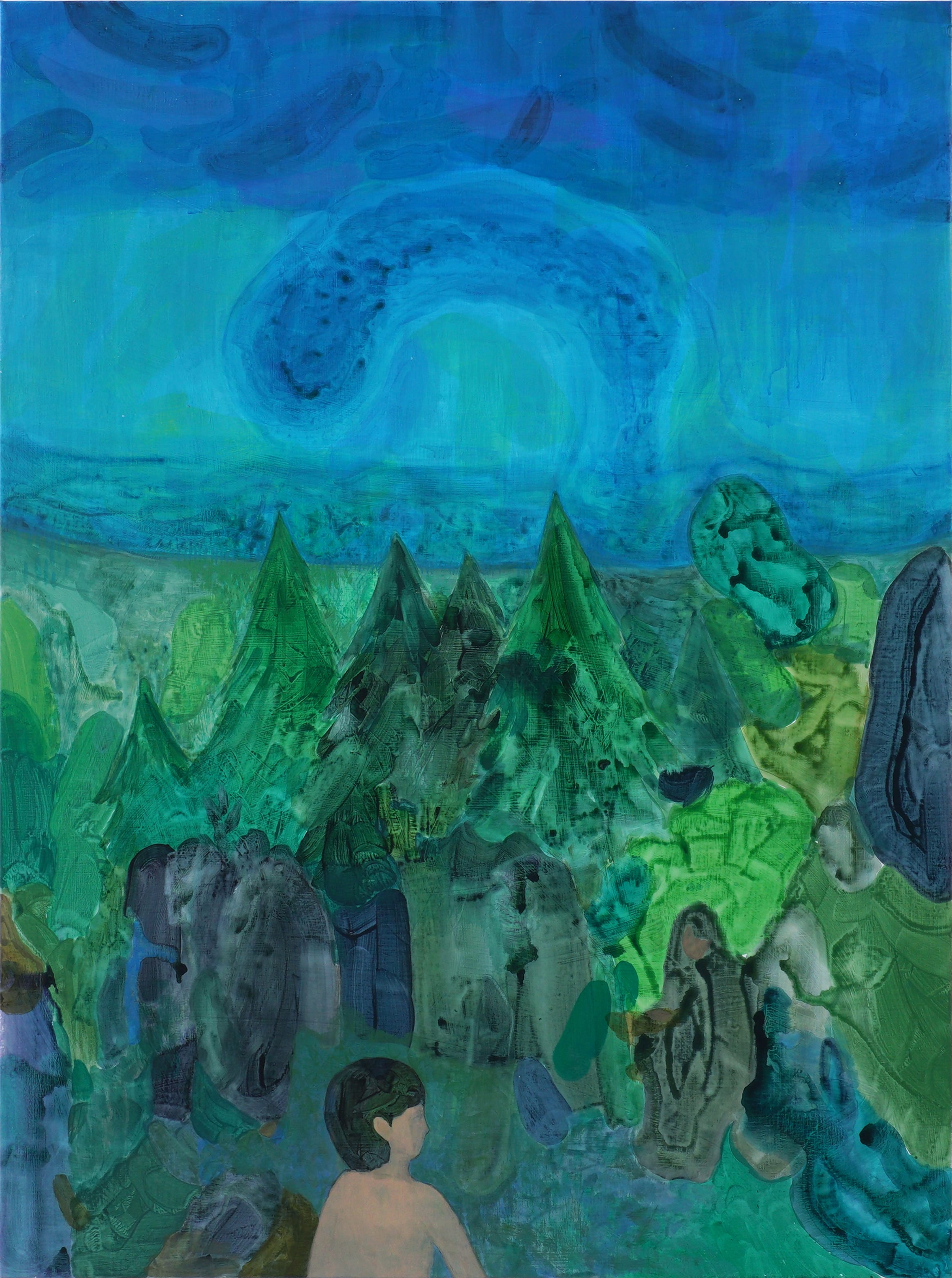 Akiyama made his solo debut at RHODES with Undercurrents, towards the end of the year. Across the exhibition ran themes of what goes on under the surface, with shadowy figures lurking in bodies of water or colourful forests. His medium inspired his subject, watercolour inks allowed to flow across the canvas with little manipulation from the artist, adding to the wild and unpredictable nature of the scenes he depicts.